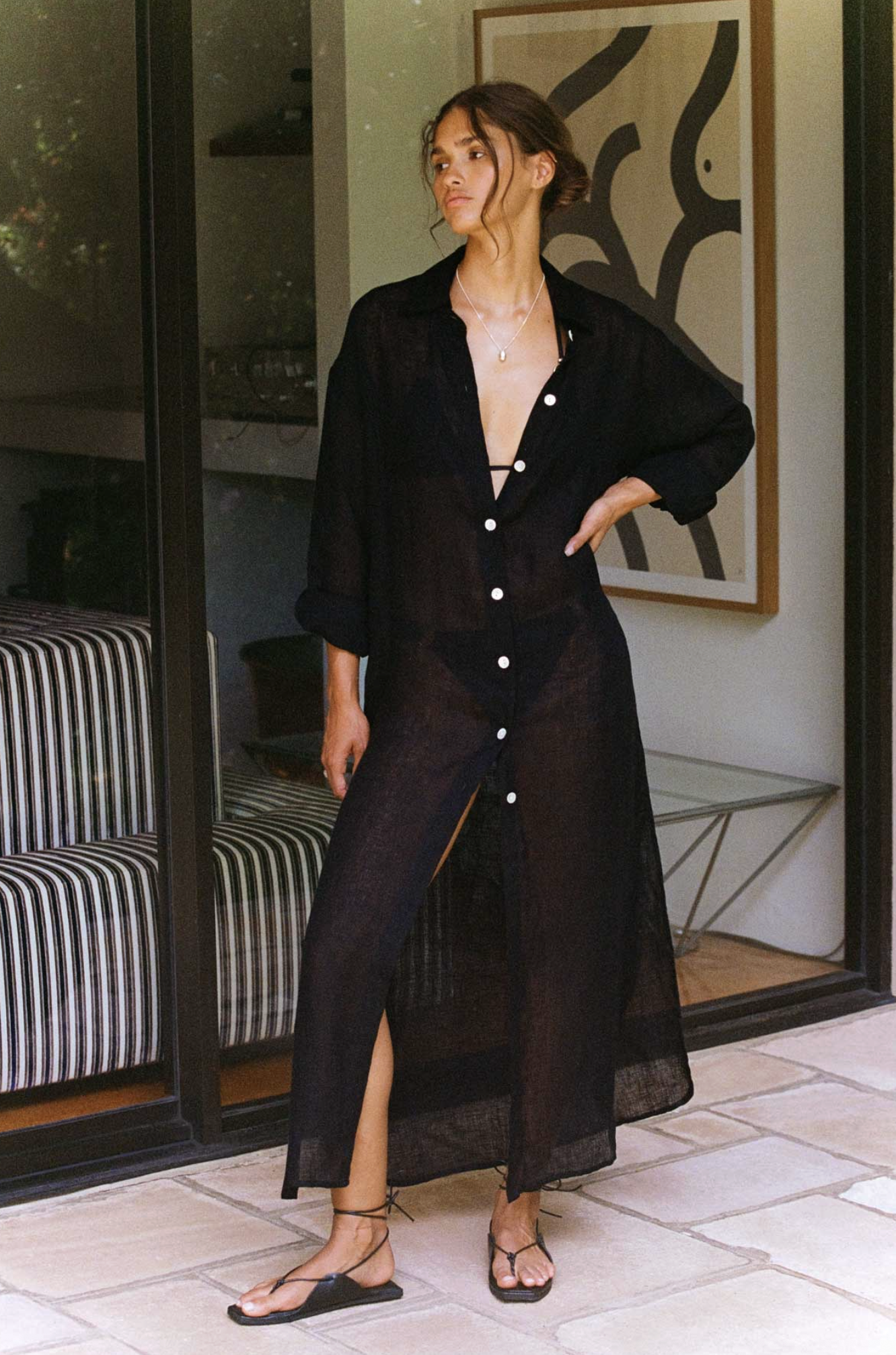 ▲ Did we mention Surf Hotel has a saltwater pool? Because the Playa Maxi is basically begging to be poolside. This button-up linen midi flips from "just woke up in paradise" to "I own the beach bar" with one tie belt twist. Splash into easy, breezy style—saltwater shimmer guaranteed.