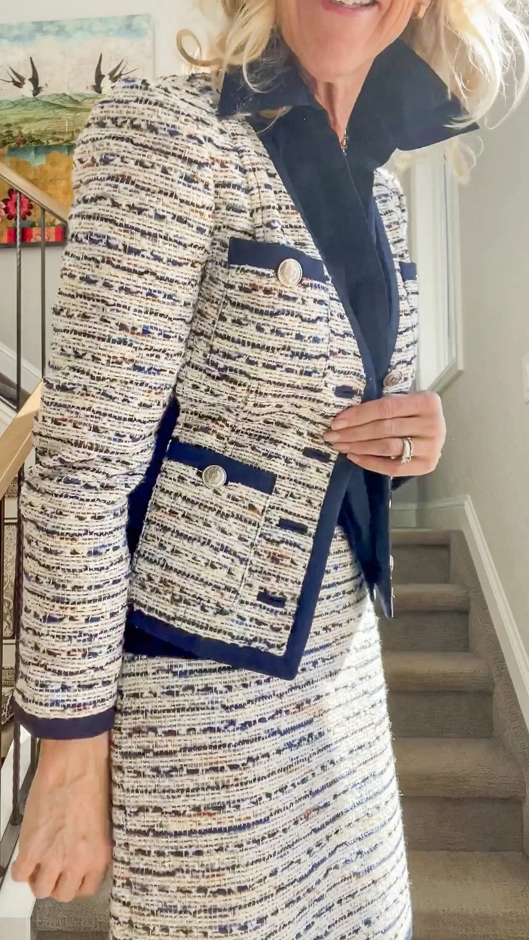Are you ready to elevate your work wardrobe to new heights of sophistication and style? Today, I'm thrilled to introduce you to a stunning ensemble that will make you feel like the ultimate well-styled businesswoman. Get ready to exude confidence and professional prowess with the V-Neck Tweed Jacket, an actual power piece that embodies modern elegance and classic suiting.