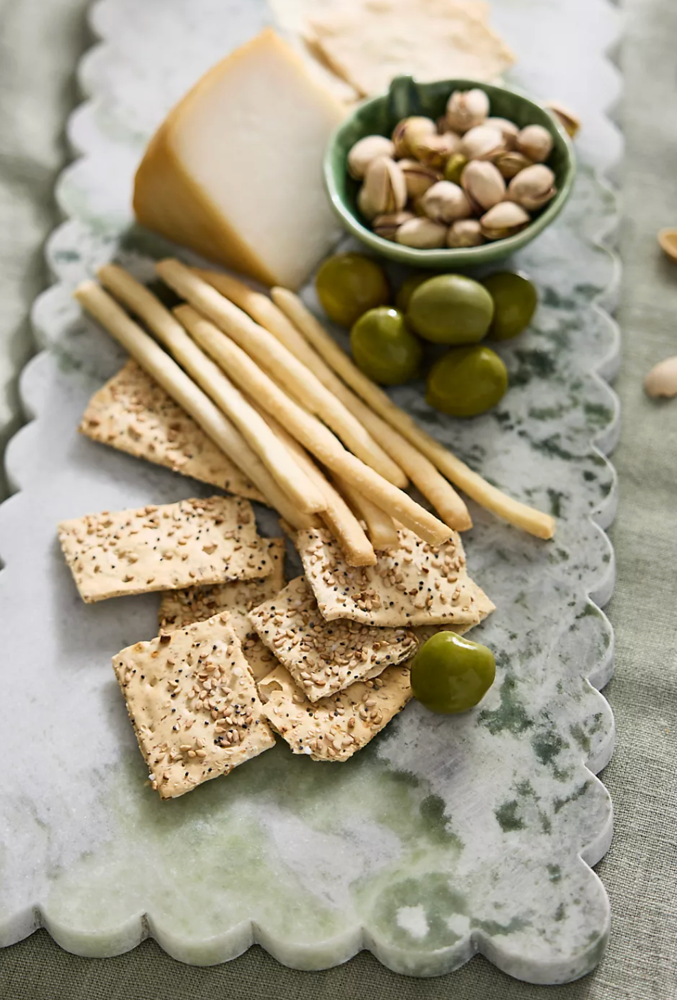 ▲ Handcrafted from green Himalayan marble, this scalloped rectangular antipasto board turns your cheese into the star of the show—because who needs a runway when your snack spread commands mountain-level attention? Move over charcuterie, there’s a new diva in town.